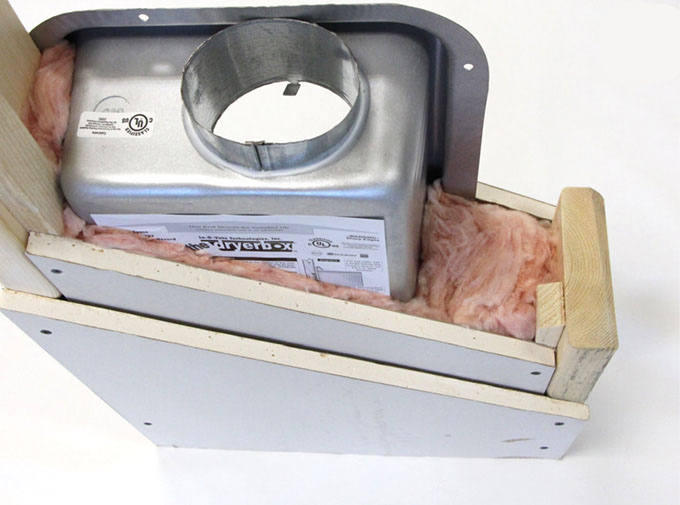 These key components are noted on the instruction sheet that comes with every Dryerbox. The following are highlights to comply with the UL Classification for through-penetration firestop systems. To achieve a fire resistance rating (one-hour F & T) 2X6 framing is required. The Dryerbox unit must be installed in accordance with the UL Cabinet System listing.
